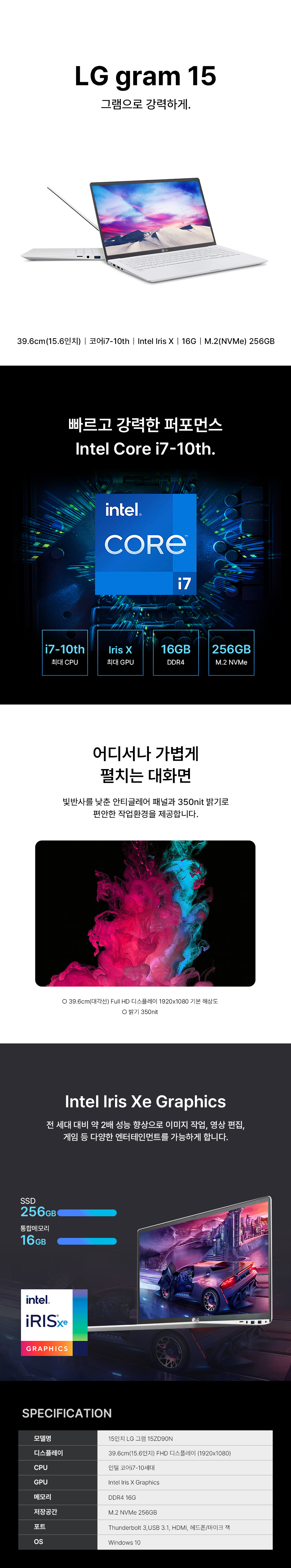 이미지 확대보기15인치 LG 그램 15ZD90N i7-10TH/16G/256G (1~6개월)