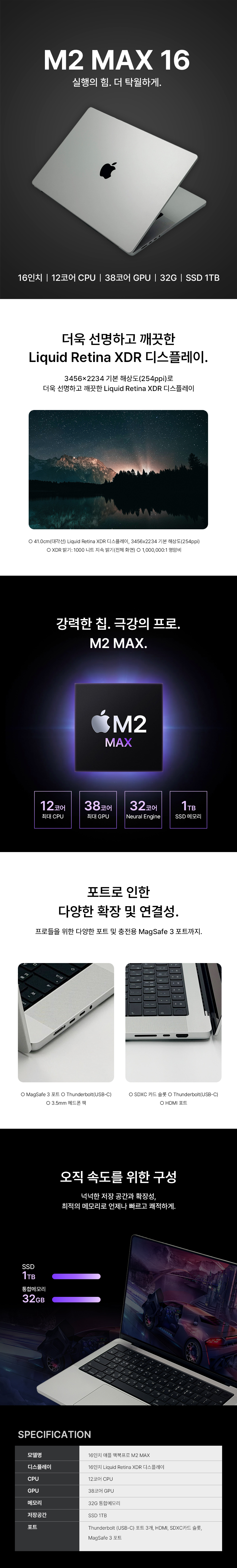 이미지 확대보기16인치 애플 맥북맥스 M2MAX/12C/38G/32G/1T 고급형 (1~6개월)
