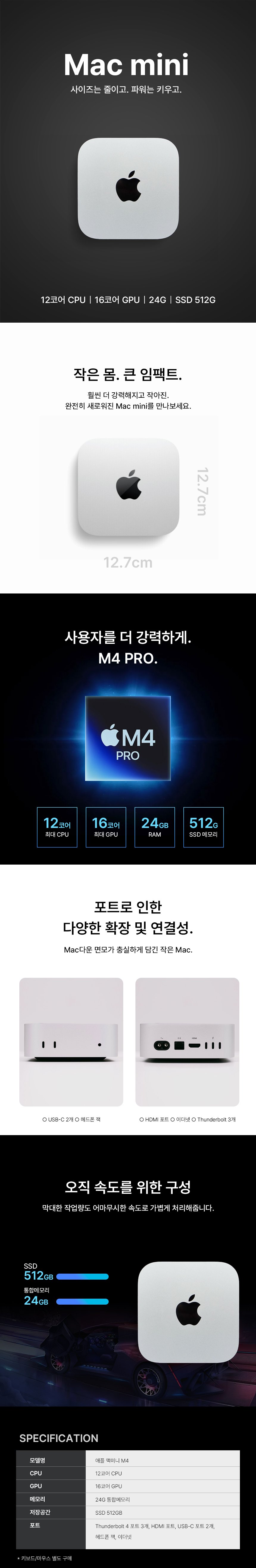 이미지 확대보기애플 맥미니 M4PRO/12C/16G/24G/512G 고급형 (24/30/36개월)