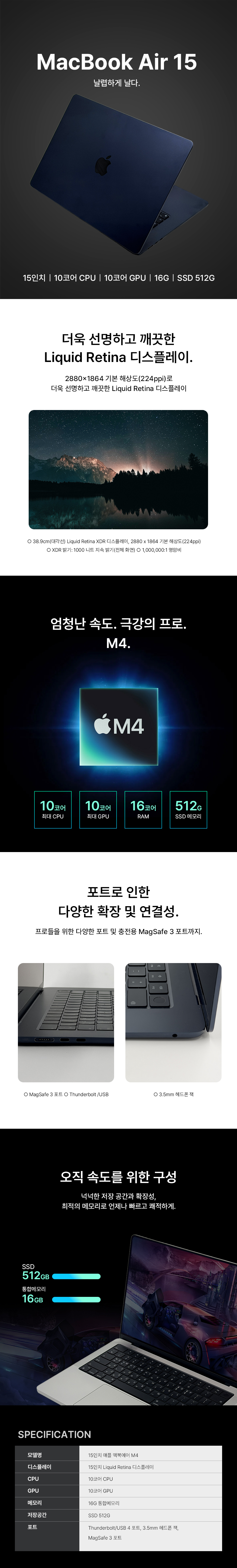이미지 확대보기15인치 애플 맥북에어 M4/10C/10G/16G/512G 중급형 (24/30/36개월)
