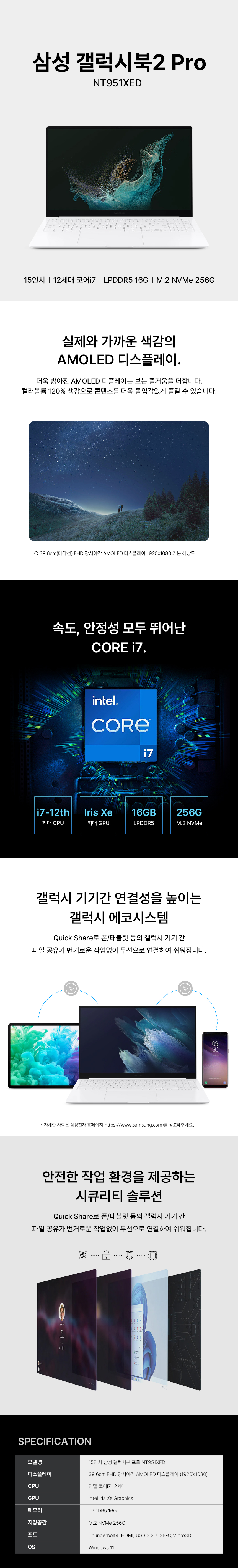 이미지 확대보기15인치 삼성 갤럭시북 프로 NT951XED i7-12TH/16G/256G (12개월)