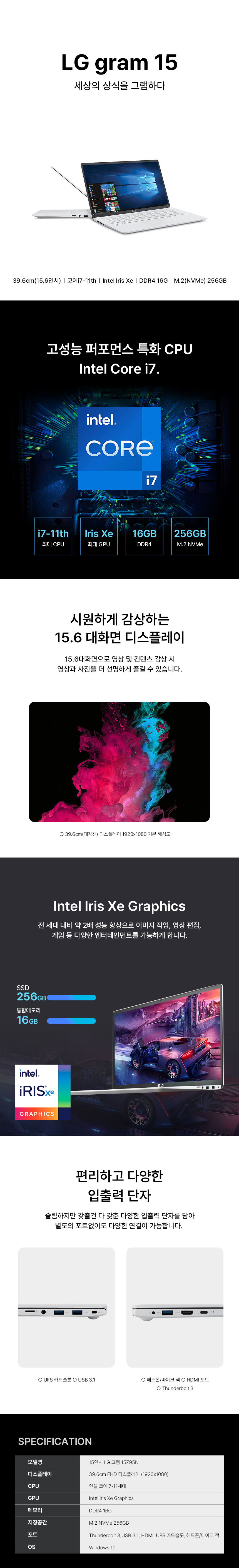 15인치 LG 그램 15Z95N i7-11TH/16G/256G (12개월)